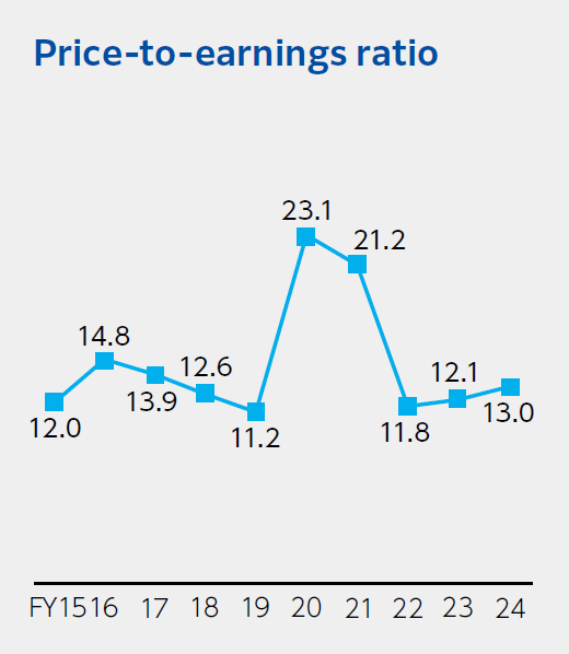 Our PBR has been stable at more than 1 over the past 10 years, and, with the exception of FY2020 and FY2021, which were affected by the COVID-19 pandemic, our PER has remained at a level of more than x10, while ROE has been stable above 10%. With regard to ROE, which is positioned as a particularly important management indicator, I am aware of the equity spread, which is the difference versus shareholders’ equity cost, and, except for during the COVID-19 pandemic, ROE has consistently exceeded our shareholders’ equity cost (7–9%). However, we will not be satisfied with the status quo, but, while remaining aware of capital efficiency, will aim to further improve profitability in order to achieve the 10% operating profit margin set forth in Vision 2030.