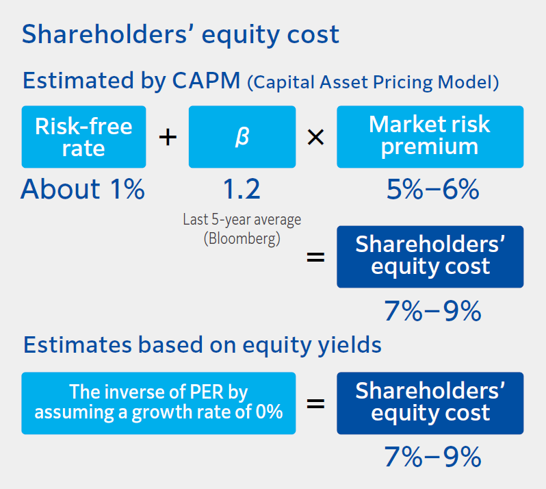 Firmly fulfilling the role of the businesses in each of these stages, we aim to increase corporate value by expanding the ROIC spread, as well as improving ROE. Our WACC is expected to be around 6–8%, which we use as a minimum hurdle when examining existing businesses and identifying investments.