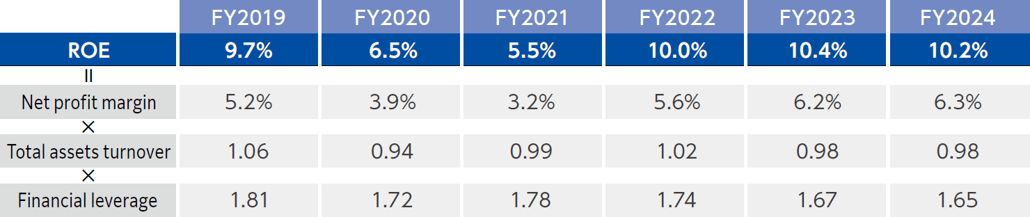 Breaking down ROE also reveals important challenges. Total assets turnover has remained below 1, but this is a temporary effect due to land purchases for town and community development, as well as for ready-built housing sales, and also due to growth investments in growth-driving businesses and new businesses, including perovskite solar cells. We will strive to translate these investments into results and improve our total assets turnover. In order to prevent assets from growing beyond necessity, investment projects are subject to preliminary screening and continuous effectiveness verification, and land and buildings are strictly monitored with turnover as a key KPI. Our financial leverage has maintained a level of efficiency and safety. Also, past trends show that the decline in net profit margin was directly related to the decline in ROE. I believe that in order to strengthen profitability in the future, accelerating growth and improving asset efficiency are important.